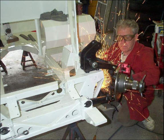 The front suspension was somewhat moreof a challenge. When the time came to install all the bits and pieces we discovered that as soon as one interference problem was resolved another reared its ugly head. Here is Dick Paterson, my last year’s co-driver for the Targa Newfoundland, modifying the steering lock stops. Man can that guy lay down a neat weld!!